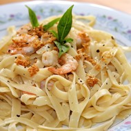 Recommended ingredients: Basil Linguine from Sapori di Napoli. Italy. Barbera Novello Machina Olive Oil. Italy. Chilled Shrimp. Recipe author: Chef John Smith, Culinary Director at a popular American grocery chain.