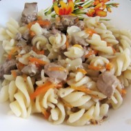 Sauté the onion and carrot, then add the flour to the pan and stir for about 2 minutes. Next, add a little water to the pan and mix.