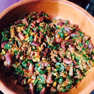 Sauté for 15 minutes, stirring and mashing the beans so that half of them are crushed.