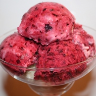 The berries should be frozen. Combine the yogurt and berries in a blender and blend until you achieve a thick consistency. Add sweetener to taste. You can use any type of berries that you like.