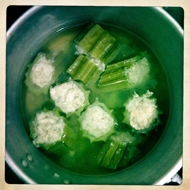 Boil the luffa rings in salted boiling water for 5 minutes. Remove and cool. Save the broth.
