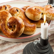 Lussekatter are traditional Swedish saffron buns typically enjoyed during the holiday season. These sweet, golden pastries are shaped into various forms, often resembling an 'S' or curled shapes. They are best served warm with a cup of coffee or tea and are a delightful treat for gatherings and celebrations.