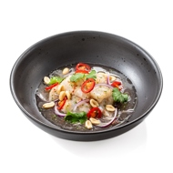 Place the chopped vegetables, lime juice, lemon juice, fish stock, and 30 grams of macruro shrimp into a blender. Blend until smooth.