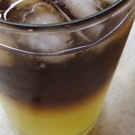 This will create a two-layer cocktail: an orange layer from the freshly squeezed mandarin juice and a black layer from the black vodka.