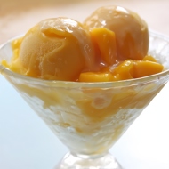 Transfer to an ice cream maker or a container and place in the freezer until set, stirring every 45 minutes.