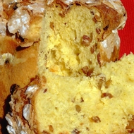 Cut the panettone into pieces and place them on plates. Sprinkle with powdered sugar.