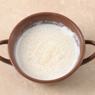 Add the tapioca to 1.5 liters of boiling water and cook for 5 minutes; drain in a sieve and rinse with cold water.