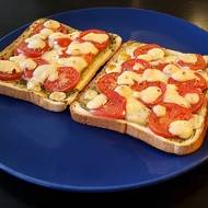 Spread pesto on the toast bread, one teaspoon on each slice.