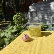 Press the garlic through a garlic press and add it to the saucepan as well.