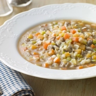 Add the carrot, onion, and barley groats to the broth. Cook for 30 minutes.