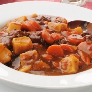 Pour a little vegetable oil into a pot. Heat it up, then add the pieces of beef and sauté. Cook until all the released liquid has evaporated — about 15 minutes.