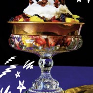 Repeat until the final layer consists of whipped cream topped with lemon curd. Cut the candied bacon into small pieces and sprinkle it over the trifle.