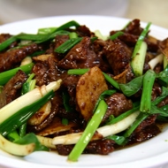While the ginger is sautéing, cut the meat into strips. You can use pork instead of veal, but choose a lean cut.