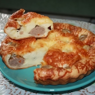 Bake in a preheated oven at 356°F for about 30 minutes (better to check according to your own oven). Let the finished pie sit for a while to absorb the juice released from the meatballs.