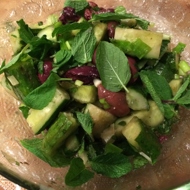 Add the cucumbers and herbs to the olives, 1 tablespoon of fresh lemon juice, and olive oil, and mix well.