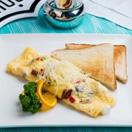 The Downtown Café is a haven for those who have been out all night and are eager for a hearty breakfast early in the morning. This omelette with feta, olives, mushrooms, and sun-dried tomatoes is one of those breakfasts.