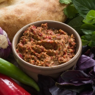 "Adjika" translates to "salt," and indeed, it contains a lot of salt, often serving as a basic spice added in place of salt and pepper. According to tradition, adjika was created by shepherds who would take it to pastures to enhance their food. It's hard to find a dish where adjika doesn't find its use: it is smeared on pieces of meat or poultry before grilling, used as a marinade for kebabs, and served alongside meat and fish appetizers. Spicy pepper aids in quick digestion, which is an important property that helps cope with the lengthy Georgian feasts. A crucial point: Georgian adjika always includes walnuts, but tomatoes are not added.