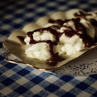 Meringue Clouds with Chocolate Sauce