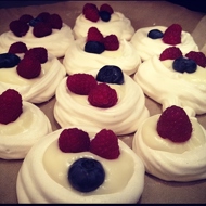 Allow the finished meringue to cool. Fill with cream and decorate with berries and mint leaves.