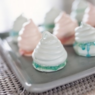 Transfer the egg whites to a piping bag or spoon them onto a baking sheet lined with foil in small mounds.