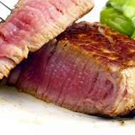 Rub the beef steak with garlic, season with salt and pepper, and fry in hot vegetable oil. The meat should be pale pink inside.