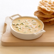 In a small saucepan, combine the cheeses, cream, and a teaspoon of chili powder. Cook over medium heat for about 6 minutes, stirring constantly until the cheese melts.