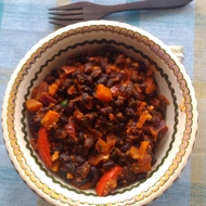 Heat a frying pan, add the vegetable oil. In the hot oil, add the carrot and onion. Sauté, stirring, over medium heat for 3–4 minutes. Then add the pepper and sauté a little longer. Next, add the tomato paste (this is a matter of taste; I prefer regular tomatoes) and continue to sauté for another 5 minutes, adding any spices you have on hand.