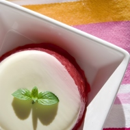 Milk Pudding with Lemon and Mint with Raspberry Sauce