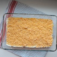 Grate the yolks as the final layer. Leave in the refrigerator for 30 minutes.