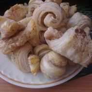 Sprinkle sugar and cinnamon on each piece (I added small pieces of dark chocolate and walnuts to some).