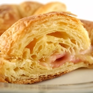Place the dough on a floured surface and roll it out to a thickness of about 3 mm. Cut out circles using a glass, gather the scraps of dough, roll them out again, and make a few more circles. Finely chop the ham.