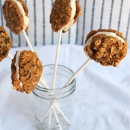 Mini sandwiches with oatmeal cookies and cinnamon ice cream on a stick
