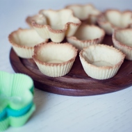 Return to the dough. Pinch off small pieces and place them in silicone molds, creating edges. Try to make the layer of dough thinner (within reasonable limits), as this will make the pastries more delicate.