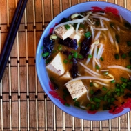 Remove the pot from heat, add the tofu. Let the soup steep for 5–7 minutes.