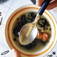 Immediately after that, add the sliced sausage, and after about 5 minutes, stir in the noodles. Cook the soup for another 5–7 minutes, until the pasta is al dente and has absorbed some of the liquid.