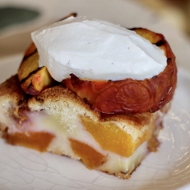 Slice the figs into wedges and arrange them in the bottom of a baking dish. Pour the batter over the figs. On top of the batter, place two more figs that have been cut in half.