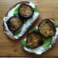 Morning Sandwich with Goat Cheese, Mint, and Eggplant