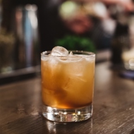Strain into a chilled rocks glass filled with ice, then top up with dark kvass.