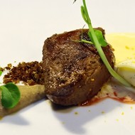 Mountain Pigeon Breast with White Carrot and Chicken Liver Purée with Sauce