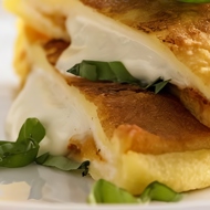 Then coat in flour, followed by the egg, and place in the hot frying pan to fry on high heat for 1.5 minutes on each side (fry no more than two sandwiches at a time to prevent sticking). Serve immediately.