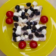 Prepare a sheet of foil measuring 30x40 cm, grease the center with vegetable oil, place the fillet, and top it with olives.