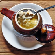 For the sauce, simmer the cream and processed cheese over low heat until smooth and well combined.