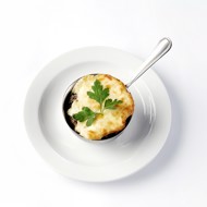 Slice the champignons and sauté them in butter. Add the sautéed wheat flour, mix, and distribute into molds.