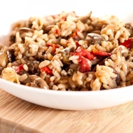 At this time, drain the water from the rice, then add it to the vegetables and mushrooms.