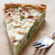 Using a slotted spoon, fold the mushrooms into the egg mixture, then add the bacon and parsley. Spread the filling over the pastry and smooth it out. Cover with foil, place on a baking sheet, and bake for about 1 hour until cooked through.