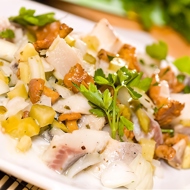 Soak the herring beforehand, remove the skin and bones, and cut into cubes.