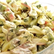 Mix everything together, add salt, and add parsley. Dress the salad with mayonnaise.