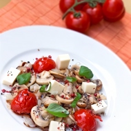 Remove the tomatoes from the oven and let them cool. Carefully peel them off the paper and add to the mushrooms and cheese, trying not to turn the salad into a mush.