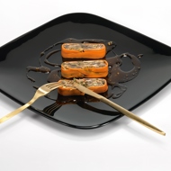 Before serving, carefully slice with a sharp knife, arrange the pieces on a plate, and serve with honey sauce.
