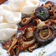 Place the onion in a pot, add the butter, and heat for 3 minutes on high power. Then add the mushrooms, ginger, salt, and pepper. Cover and simmer in the microwave for 5 to 7 minutes on full power.